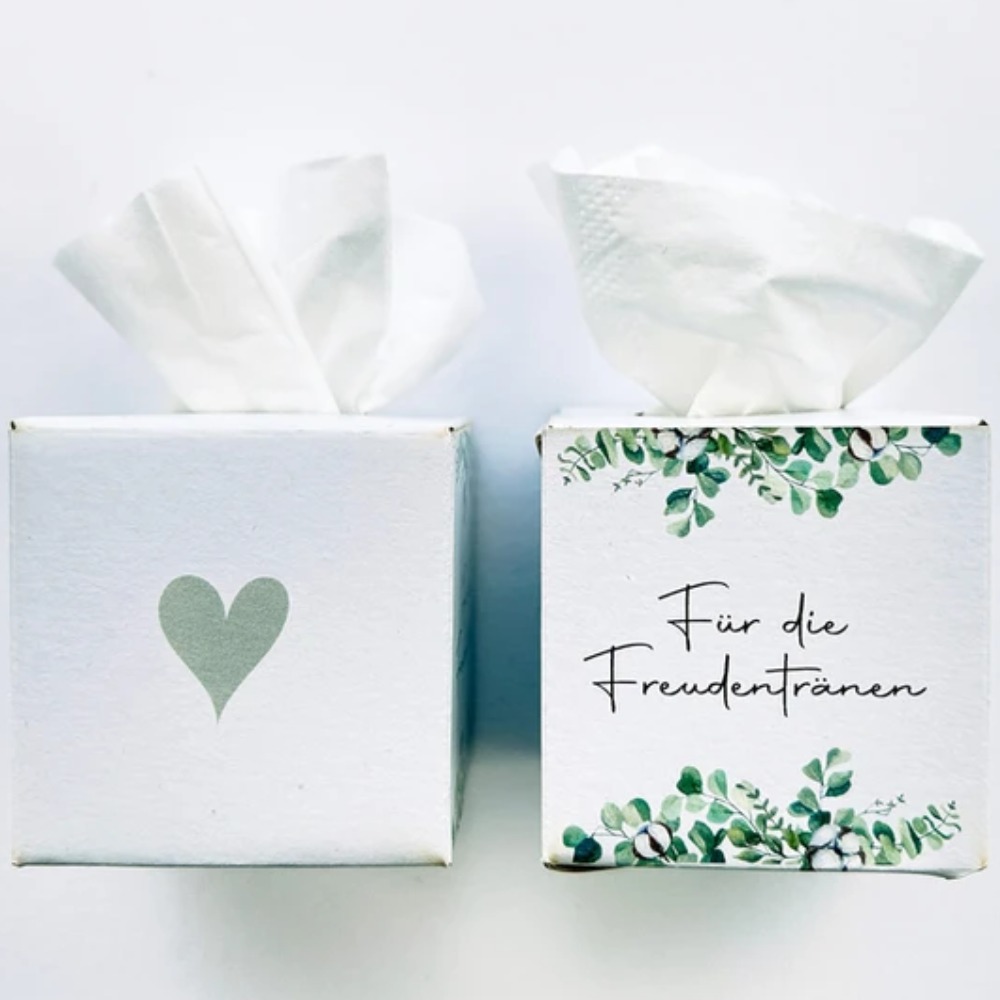 Es gibt wohl kaum eine Trauung auf der keine Tränen vergossen werden – Freudentränen natürlich. Aus diesem Grund ist es eine nette Aufmerksamkeit für die Gäste in der Kirche oder an sonstigen Trauungsorten Freudentränen-Taschentücher bereitzustellen.
