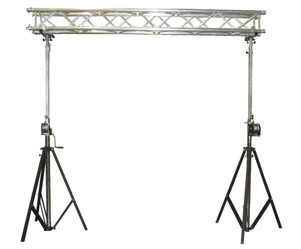 Dieses Kurbelstativ dient zur Aufhängung von Vorhängen/Banner oder anderer Deko. Der Preis ist für ein Stativ. Man benötigt zwei, um z.B. so eine Aluminium Traverse zu verbinden. Durch das Kurbeln kann man dann die Aufhängung auf eine bestimmte Höhe bringen.
