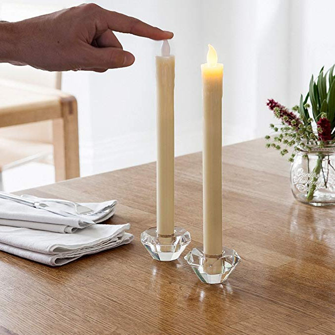 Wachsfinisch und leichtes Flackern, lässt diese Kerzen sehr echt aussehen.