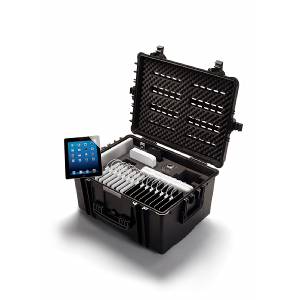 Diese elegante Lösung zur Aufbewahrung mehrerer iPads ist vor allem für den Einsatz an Messen geeignet. Über Nacht können die iPads sicher verstaut und der Koffer kann abgeschlossen werden. Mit dem Stromkabel werden Sie über Nacht geladen und Lüftungsschlitze garantieren ein langlebiges Handling der Geräte.