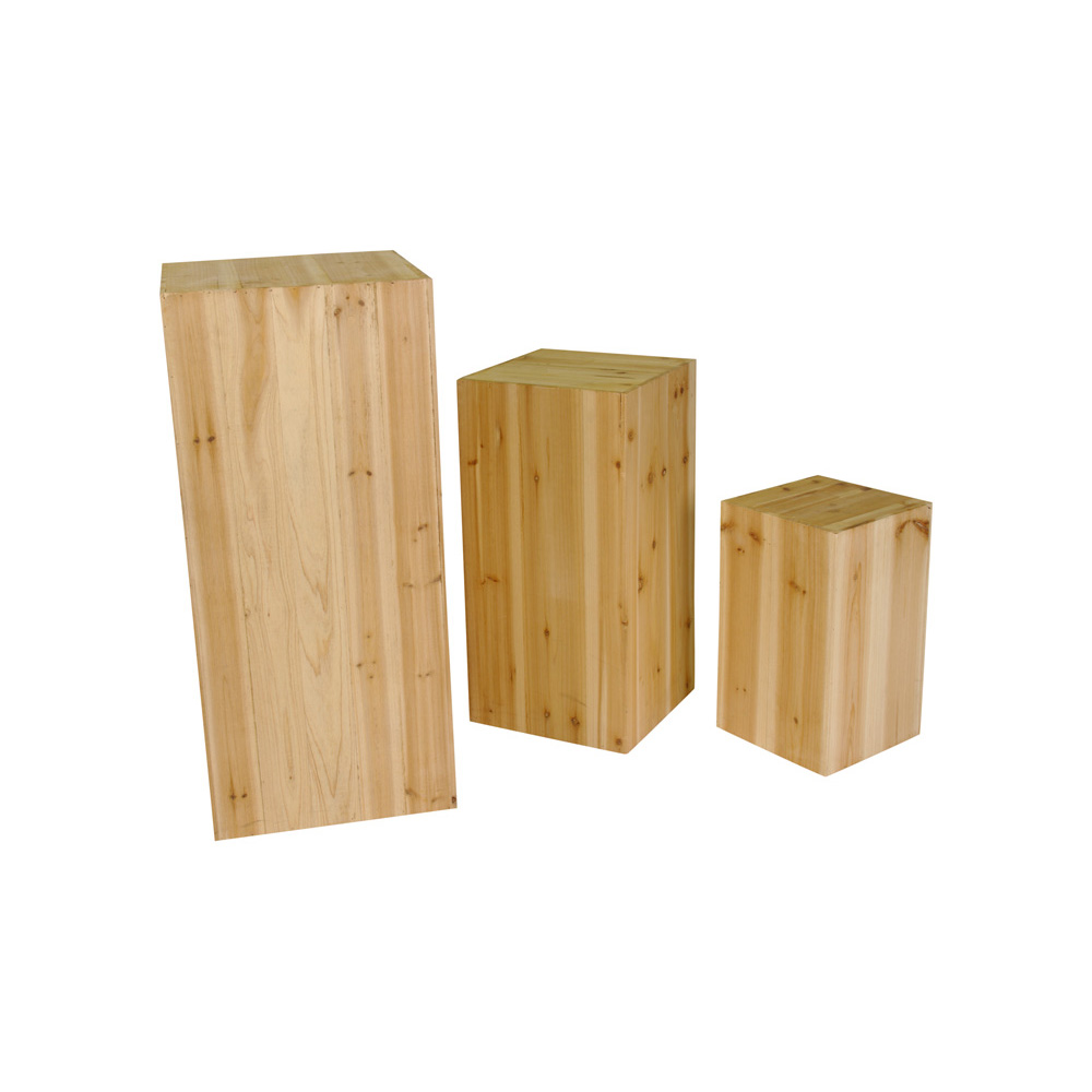 Dieser Holzaufbau besteht aus drei unterschiedlich hohen Kuben i Holzlook. Ideal zur Präsentation von Dekoelementen auf der Fläche des Kubus.
